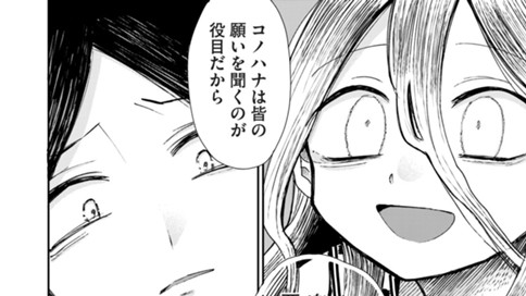 【ヤングマガジン月間賞 入選】恋人が入信した新興宗教の集会に出た主人公は、そこで「此華様」と崇められる少女と出会う。信者の幸福を叶えるためだけに生まれたと語る、無垢な彼女を見て、主人公は彼女を救いたいと思い始める。そんな中、恋人との関係性にも亀裂が生じて‥‥。紙一重で揺れ動く愛と狂気の物語。